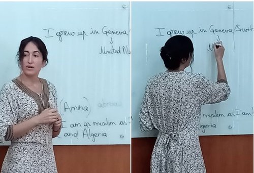Pada pertemuan minggu lalu, KEC juga difasilitasi oleh seorang fasilitator asing warganegara Prancis yang berdarah kelahiran Algeria dan akrab disapa Ms. Mina. Pada kesempatan ini Ms. Mina memberikan pengantar Bahasa Inggris dengan gaya yang sangat rilax and fun sembari memperkenalkan dirinya dengan panjang kali lebar. Dari perkenalan dan percakapan yang berlanjut dengan para mahasiswa, kemudian para peserta KeC diminta untuk memberikan pertanyaan dan terjadilah komunikasi dua arah dengan Bahasa Inggris yang cukup intense.
